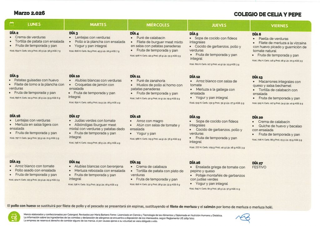 Inicio / Familias / Menú escolar
